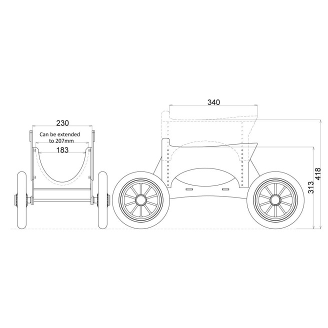 La construction légère est réalisée en contreplaqué aviation. Les arbres de roue sont en acier inoxydable et sont équipés de grandes roues de 215mm de diamètre facilitant le déplacement dans l’herbe.