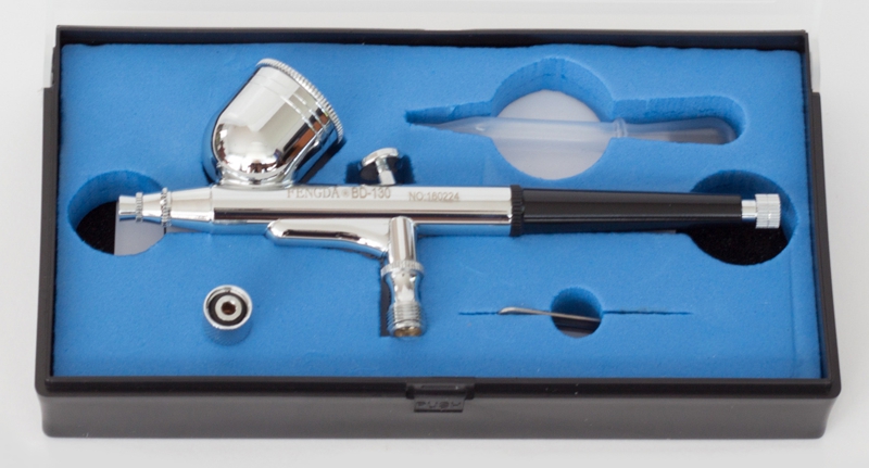 L’aérographe Fengda BD-130 est un pistolet à peinture universel à gravité et double action. La première action, on laisse entrer l’air et la deuxième permet de régler la quantité de peinture.