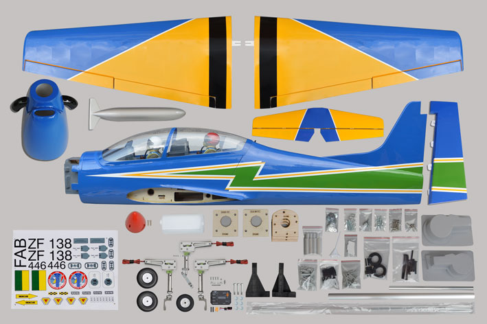 Le Tucano Phoenix Model est livré avec le train et la roulette avant amortie rétractable, ainsi qu’avec les accessoires nécessaires à la finition du modèle.