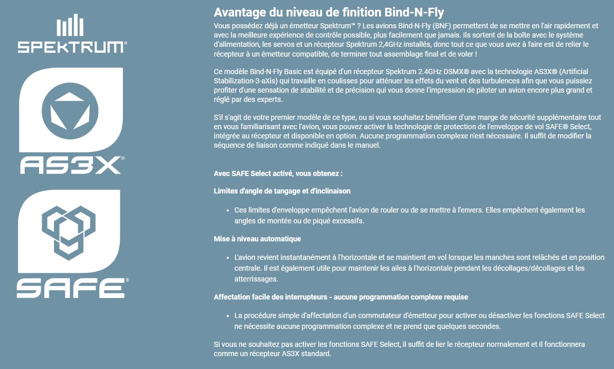 - La stabilité gyroscopique inégalée de la technologie exclusive du AS3X.