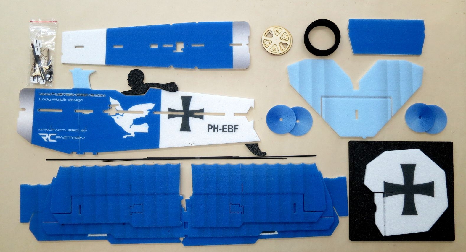 Contenu du kit Indoor CRACK Fokker de RC Factory
