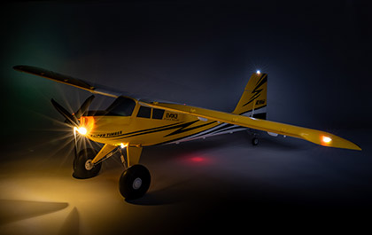 Le Super Timber 1.7m est équipé de lumières LED d'atterrissage, de navigation et feux stroboscopiques très réalistes alimentées par la batterie de vol. Il dispose même de feux de position et d'atterrissage supplémentaires pour une visibilité accrue.