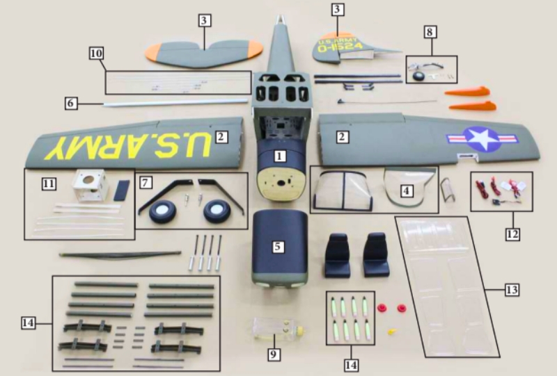 - Très belle réplique radiocommandée du Cessna L-19A Bird Dog en kit ARF.