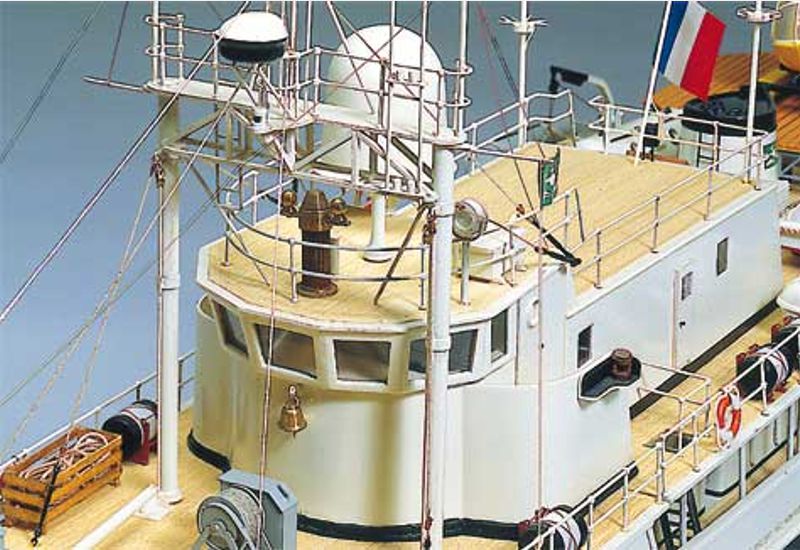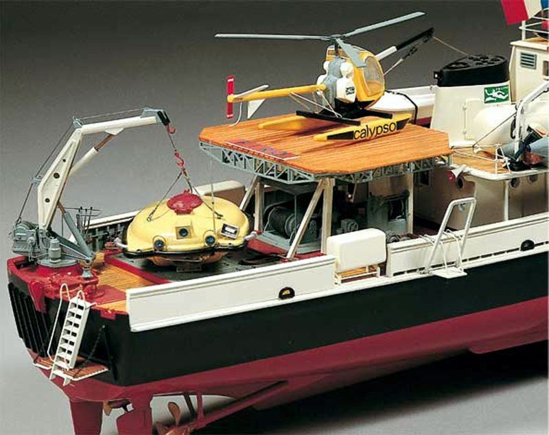 La reproduction Billing Boats à l’échelle 1/45ième de la Calypso a été réalisée d’après les plans originaux et avec l’aimable coopération de la Fondation Cousteau.