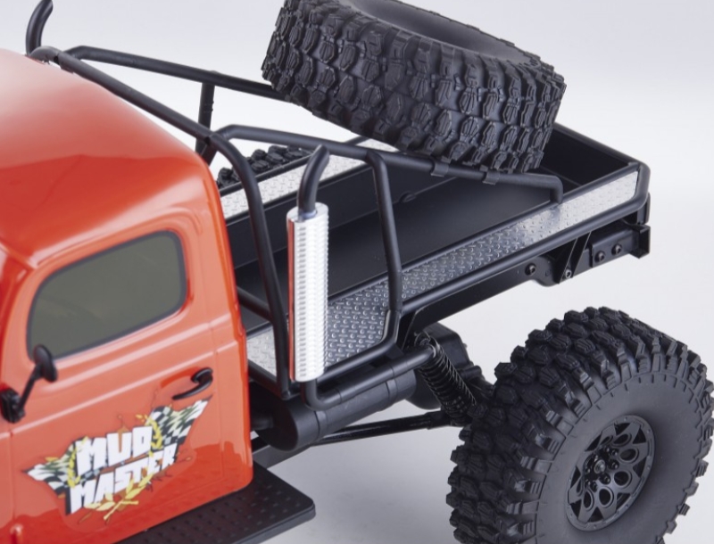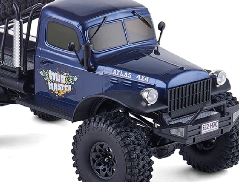 Camion de course tout-terrain de type crawler, le Master scaler Atlas Mud 1 :10 ARTR de RocHobby est un modèle réduit RC équipé de 4 roues motrices et d’une puissante motorisation électrique. Kit ARTR / Prêt à rouler : véhicule livré entièrement assemblé, décoré et réglé, avec la radio à volant.