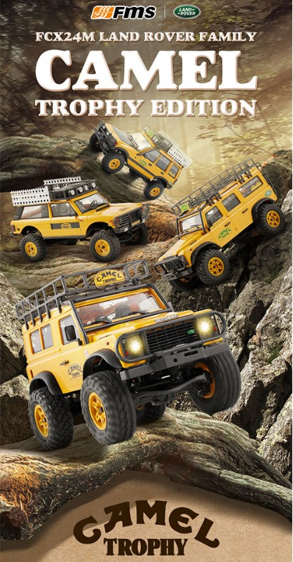 Revivez l’aventure Camel Trophy avec les modèles officiels à l’échelle 1/24 Land Rover Defender 90 & 110 et le Range Rover 1st gen de FMS. Deux icônes du tout-terrain réunies dans la gamme de Crawler RC FMS FCX24M RTR, prêtes à rouler et à incarner l’esprit d’expédition.