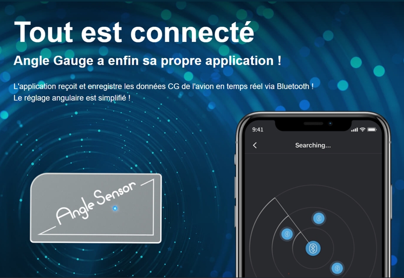 Cette jauge d’angle se compose de 3 modules indépendants qui se fixent sur les gouvernes et se contrôlent sans fil par Bluetooth via votre smartphone ou GSM