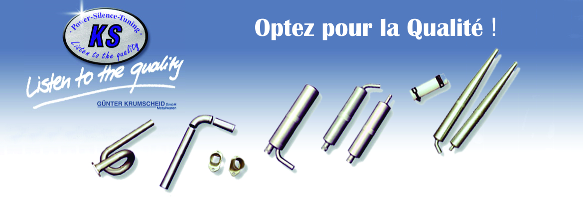 KS met toutes ses connaissances dans la fabrication de ses pots d’échappement, accessoires et silencieux. Il les réalise dans un alliage spécial en aluminium, afin qu’ils produisent des sons doux et agréables. Afin de réduire les bruits, l'entrée et la sortie des silencieux externes et des tubes de résonance sont tous munis d'un moletage élaboré.