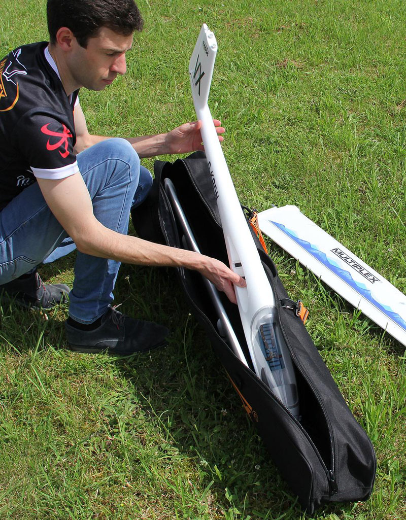 Pour vous permettre de transporter facilement votre planeur, Multiplex vous propose la Housse / Sac à dos de transport. Très pratique, elle est l'équipement parfait pour gravir les pentes les mains libres. Elle est utilisable pour tous les planeurs d’une envergure allant jusqu’à 2,40 mètres.