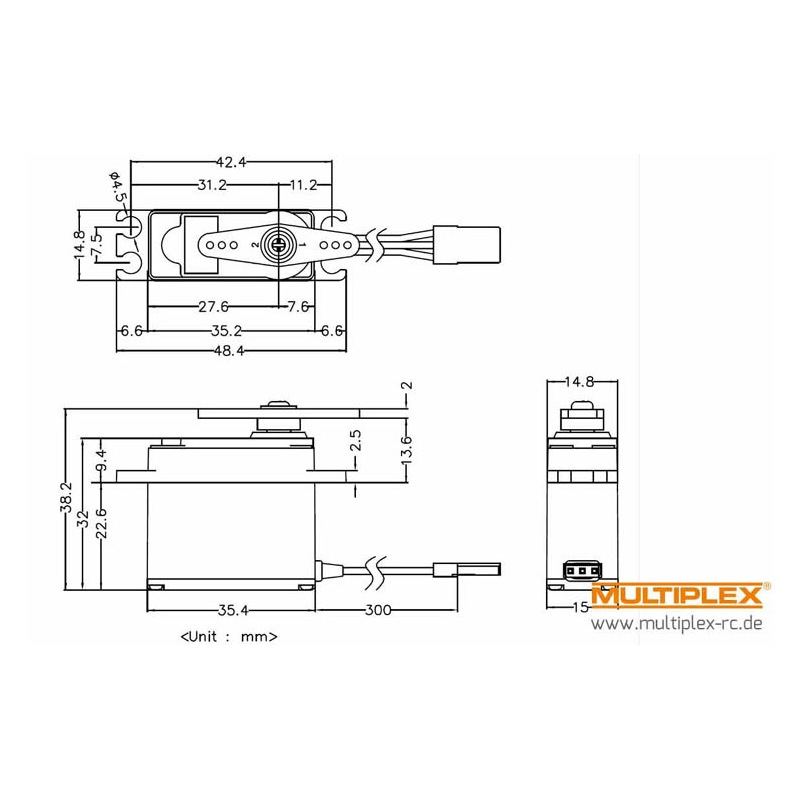 Le Hitec MD250MW est un servo digital, puissant, léger et d’une épaisseur réduite à seulement 15mm. Ce servo High Voltage (plage d’alimentation de 4.8 à 8.4 Volts), à pignons métal et monté sur 2 roulements à billes, possède une très haute exactitude de positionnement grâce à son système « Magnetic Encoder » qui n’utilise pas de potentiomètre. Ce puissant servo est également programmable.