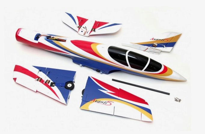Ce jet de sport, aux excellentes caractéristiques de vol, peut atteindre la vitesse de 130 km/h avec une alimentation en LiPo 6S.