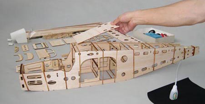 - Toutes les pièces en bois (balsa/CTP) prédécoupées au laser et nécessaires à la réalisation du modèle,