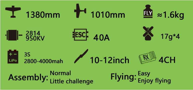 Il peut être équipé au choix, d’une motorisation électrique avec batterie LiPo 3S, ou d’une motorisation thermique 2T de 4 à 5cc.