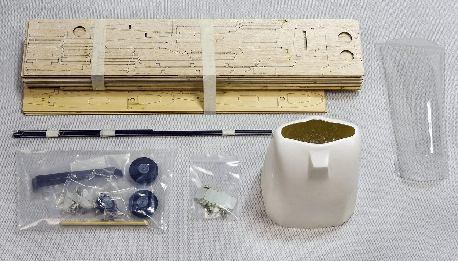 Ce kit d’excellente qualité est très facile à assembler. Toutes les pièces en bois sont prédécoupées au laser et le capot moteur est moulé en fibre de verre.