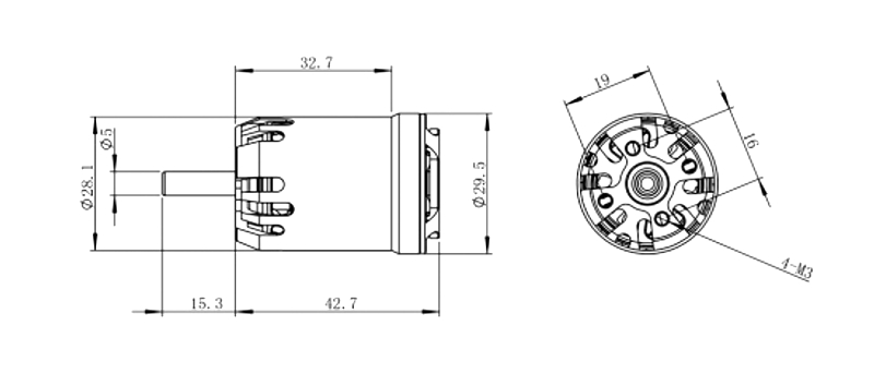 Dimensions du carter : 28.1mm de diamètre sur 42,7mm de long