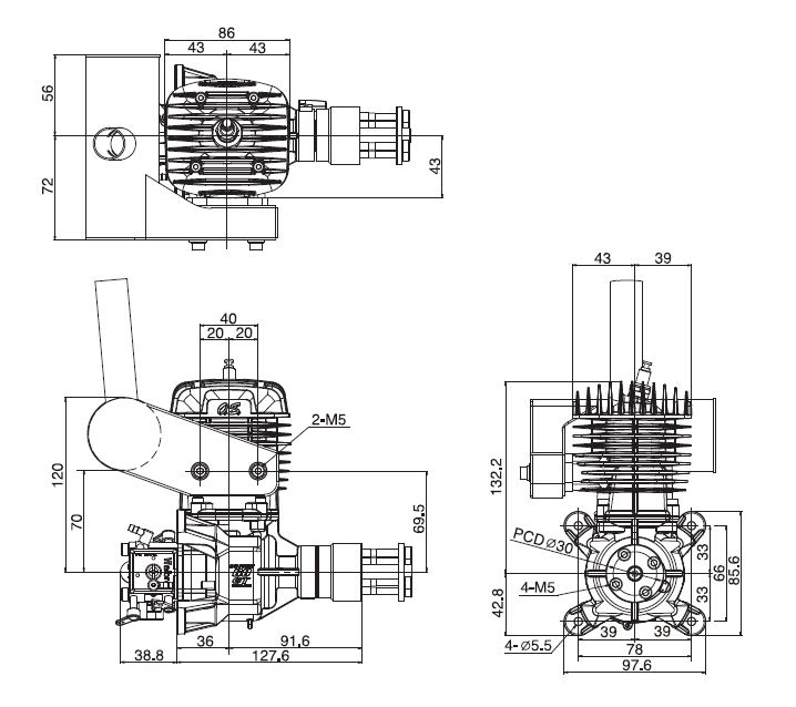 Du fait de son encombrement relativement réduit, il peut se loger sous le capot des avions de la classe des 50-55cc en offrant plus de puissance.