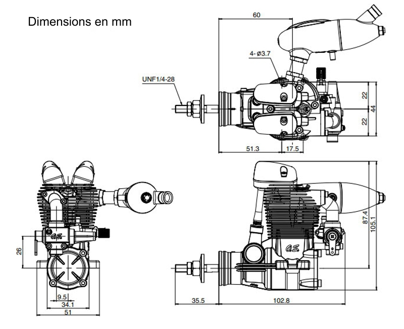 - Requiert: Carburant avec nitrométhane (10 à 20%)