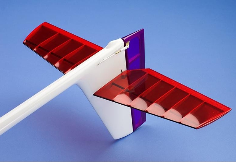 - L'empennage horizontal est pendulaire, ce qui mène à plus de précision et de plaisirs en vol. Il est lui aussi renforcé carbone et finition Oracover.
