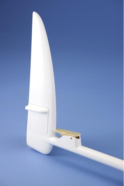 Le stabilisateur flottant est en structure bois également, renforcé avec des pièces en carbone. Il est fixé sur une plaque en fibre de verre pivotante, permettant ainsi l'articulation complète du stabilisateur.