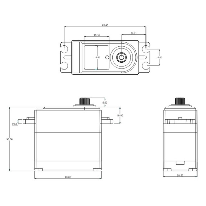 - Vitesse de fonctionnement (6.0V): 0.12 sec / 60 degrés à vide.