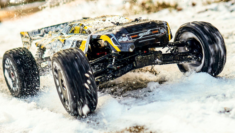 Véhicule RC tout-terrain électrique de grande qualité équipé de 4 roues motrices, le Shogun arbore une nouvelle déco et embarque de nouvelles technologies.