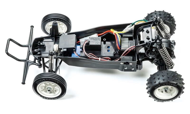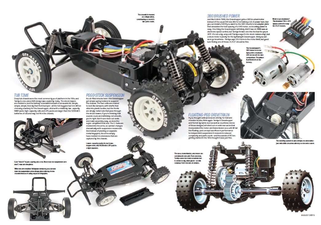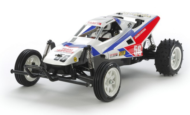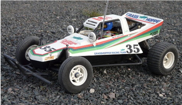 Modèle à monter équipée de 2 roues motrices, la GRASSHOPPER de Tamiya a été une révolution en 1984 dans le domaine de la voiture radiocommandée.