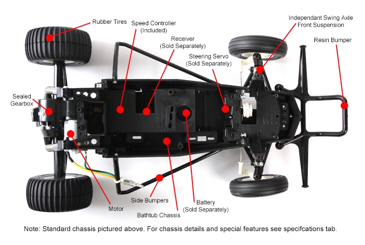 Le Buggy Grasshopper est équipé d'un châssis baignoire en structure ABS chargé résine et est très facile à assembler.