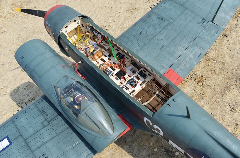 - Une motorisation, électrique alimentée avec une batterie LiPo 12S, est également permise grâce à l’accès facile au fuselage.